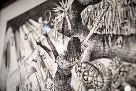 僕は高校時代から作家を志し、コンペ応募や自主的な発表にも力を入れてきました。大阪芸大の学生作品オークションへの参加をきっかけに、クラシカルな書斎に飾りたくなるような作品づくりを意識するようになり、現在は、父が木工技術をいかして手作りしてくれるオリジナルの額縁とともに販売しています。版画というジャンルの商業的な側面も考え、学生の頃から作品を販売する経験を積んだことで、市場や客層に対する視点も養うことができました。 |