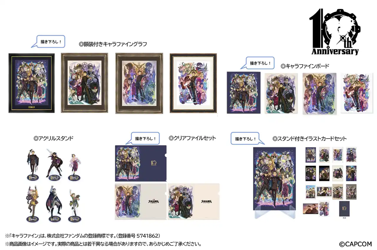10周年を記念して描き下ろされた「大逆転裁判 ~拾周年万華ノ宴~」ほか、「大逆転裁判」シリーズのアートディレクション/キャラクターデザインを手掛けた「塗 和也」が描く魅力的なアートを使用した商品が発売中! 詳しくはカプコンオフィシャル通販サイト「イーカプコン」の大逆転裁判10周年記念商品 特設サイトでご確認ください。この機会にぜひご購入を! |