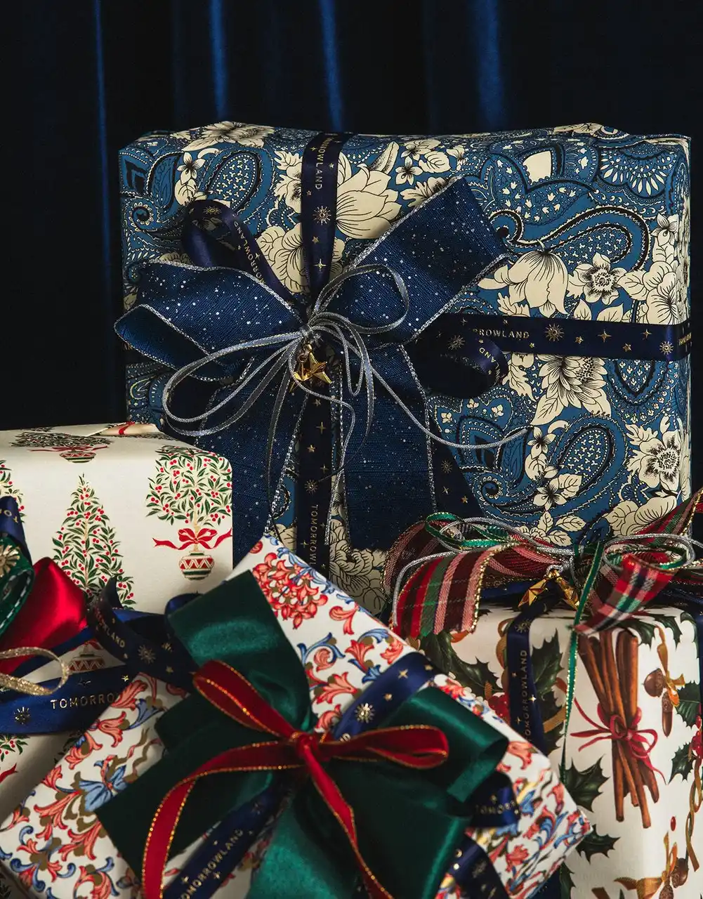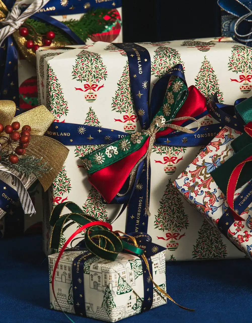 | 毎年人気のホリデーラッピングが今年も登場。〈Bon Cadeaux(ボンカドゥ)〉の特別なリボンと世界の包装紙で、開ける前から心が躍るギフト体験を。 |