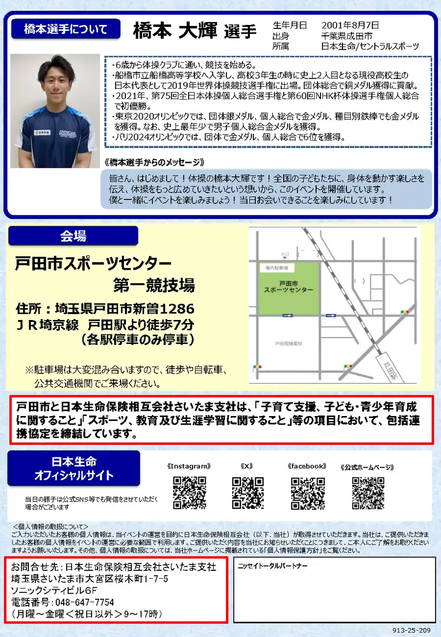 【埼玉県戸田市】オリンピック金メダリスト 橋本 大輝(はしもと だいき)選手による体操教室&トークショーを開催します!