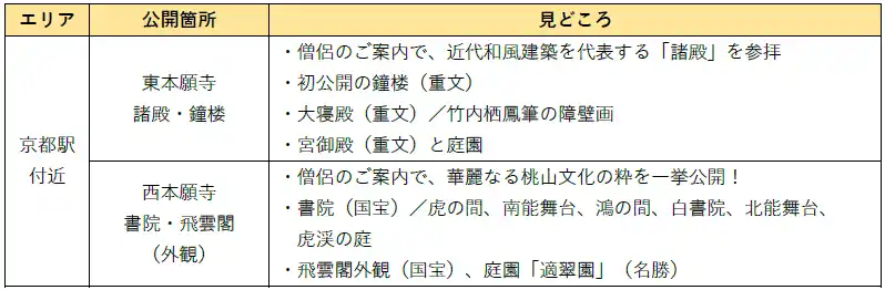 京都駅を発着点とし、特別公開寺社の入場料金や乗車料金がセットになった、便利なプランを設定しました。 |