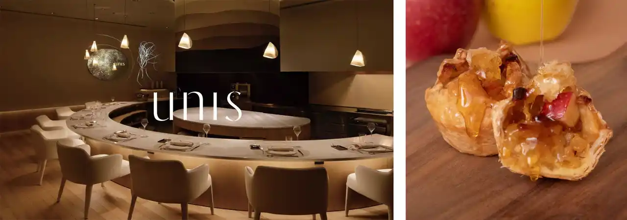 unis(ユニ): イノベーションフレンチレストラン。季節の恵みを活かし、ジャンルにとらわれない自由な発想で、食材の新たな可能性を追求。洗練されたトップシェフの感性と技術が光る、特別な食体験を提供しています。 |