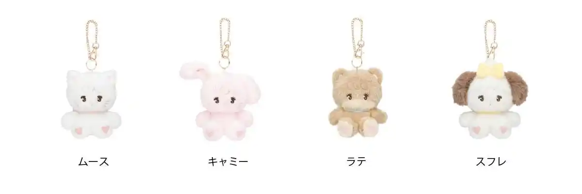 ◆おすわりキーチェーンマスコット 4種 各2,200円 |