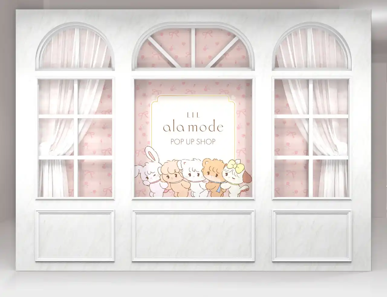 今回のPOP UP SHOPは「Lil ala mode」のコンセプトである「小さくてチャーミングな仲間たちが集まり、「好き」や「夢」をぎゅっと詰め込んだ、とびきりかわいくておしゃれな世界。 」をそのまま空間に再現。どこから見ても「かわいい!」が溢れる装飾で皆様をお迎えします。 |