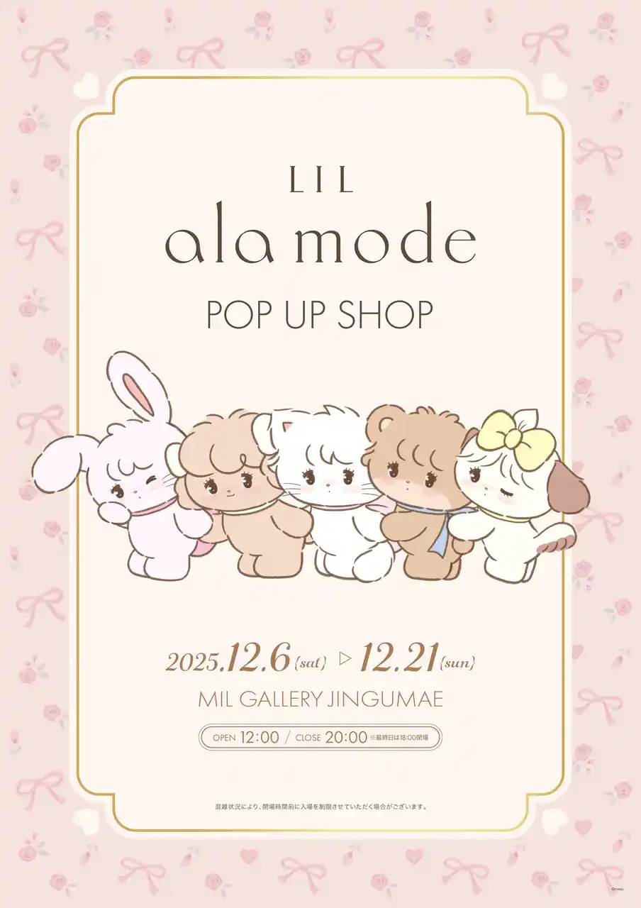 また同日より、「MIL GALLERY JINGUMAE」(東京都渋谷区神宮前4-25-28 2F)にて、「Lil ala mode POP UP SHOP」を開催いたします。 |