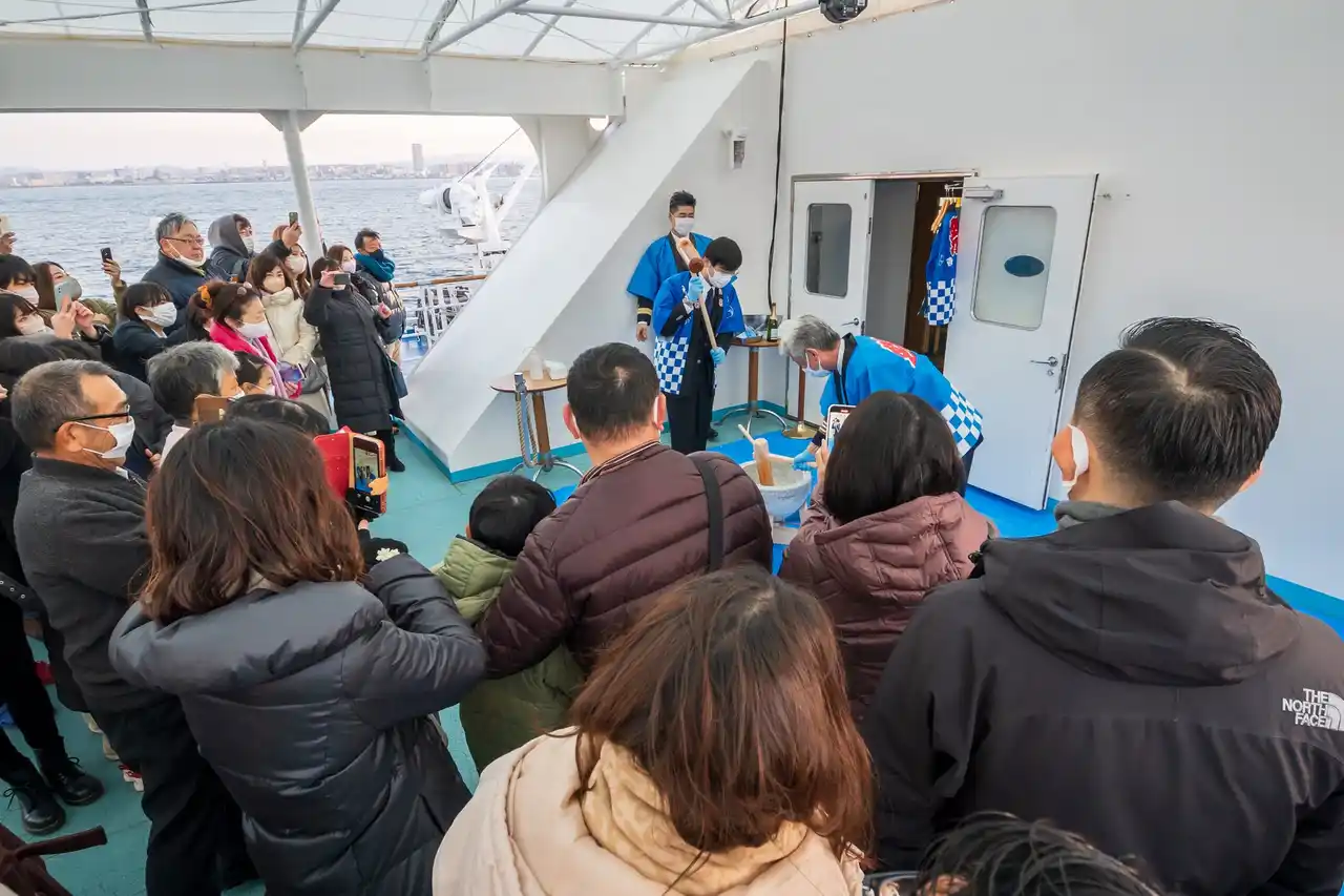 | さらに、毎年恒例の「餅つき大会」や「お年玉抽選会」など、お正月ならではの体験イベントも実施し、船上で迎える“特別な元旦”を演出します。 | |||||||||||||