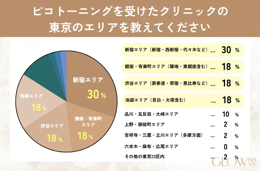 | ■Q1:ピコトーニングを受けたクリニックの東京のエリアを教えてください | ||||||||||||||||||||