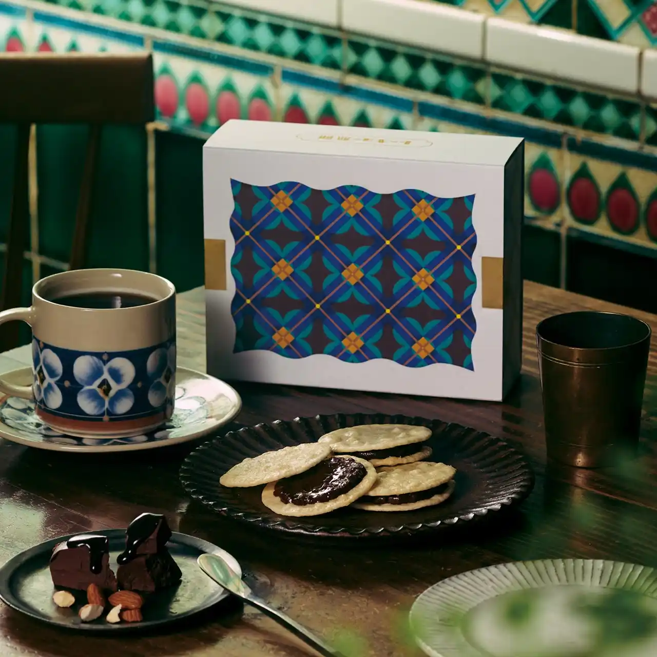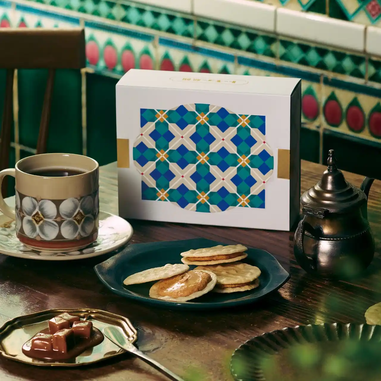 日本茶はもちろんのこと、珈琲や紅茶に合う新しい煎餅サンドです。国産の米で作られたパリパリと香ばしい煎餅に、風味豊かなクリームをサンド。クリームと調和する軽やかな煎餅を目指し、煎餅は薄さ3mmの軽やかな食感に焼き上げました。洋菓子の発想で生まれた口どけなめらかなクリームは、ほんのりと塩気のある煎餅とおいしさを引き立てあいます。 |