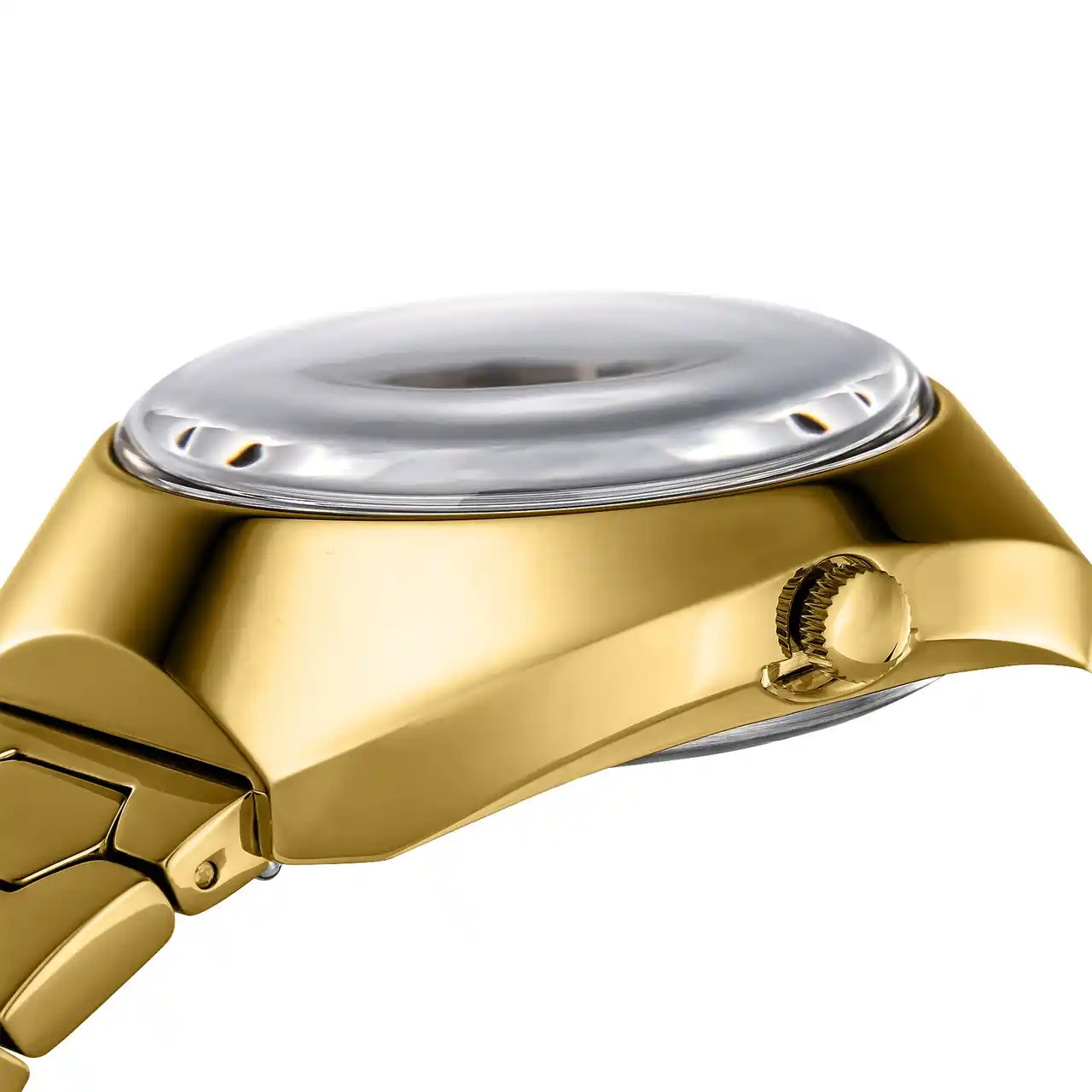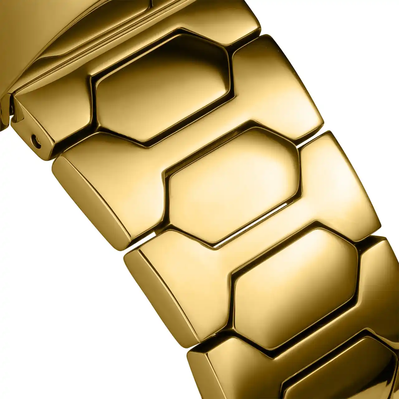 39mmのぷっくりとしたトノー型ケースは、全面ポリッシュ仕上げによる美しい輝きを放ちます。 |