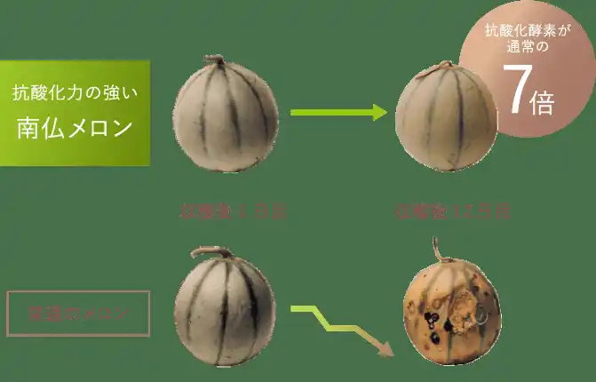 主原料は、南フランスの選ばれた4つの農家でのみ育てられている特別なメロン。抗酸化酵素を通常の7倍以上持つ特別なメロンは、収穫して日数がたっても若々しくハリがあります。そのメロンから抽出した成分を、パリの研究所の特別の技術で、食パンの160分の一という微量の小麦でコーティングして、胃酸で解けず腸に届くようにした原料が「メロングリソディン」です。腸から吸収されて、自分の体を若い頃の標準に戻してくれます。40以上の医学データはフランスの「グリソディン」サイトで公開されています。 |