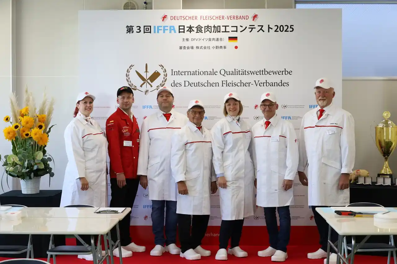 150周年を迎えるDFV(ドイツ食肉連盟)より審査員7名が来日し5日間にわたる厳正な審査が実施されました。 |