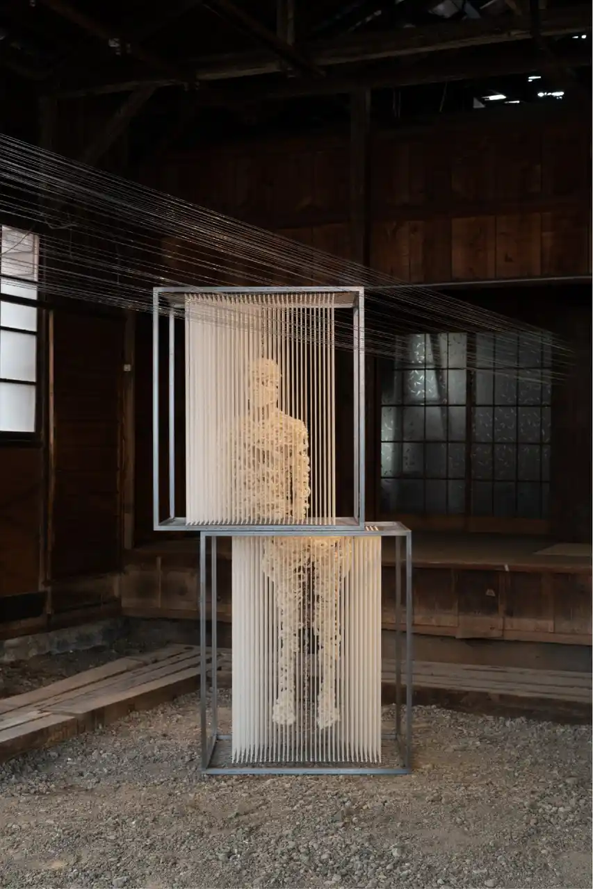 2000年生まれ。神奈川・東京都拠点。 東京造形大学テキスタイルデザイン専攻を卒業。2024年4月に自身初となる個展をSOM GALLERYにて開催。黒瀧は、繊維が交差することで立体的な構造が生まれる織物の造形に着眼を得て、手作業を通じた経糸と緯糸の組み合わせを用いた、立体作品を制作しています。彼の代表作である、「Human」シリーズでは、規則的な糸の配置で構成されるフレームの中に人間を閉じ込めることで、パターン化された現代社会や人間の思考を浮き彫りにさせます。彼は自身の作品を通じて、空虚な現代社会や彼が捉える人間の視点を浮かび上がらせ、人々をアルゴリズムからの解放へと導くことを試みます。 |