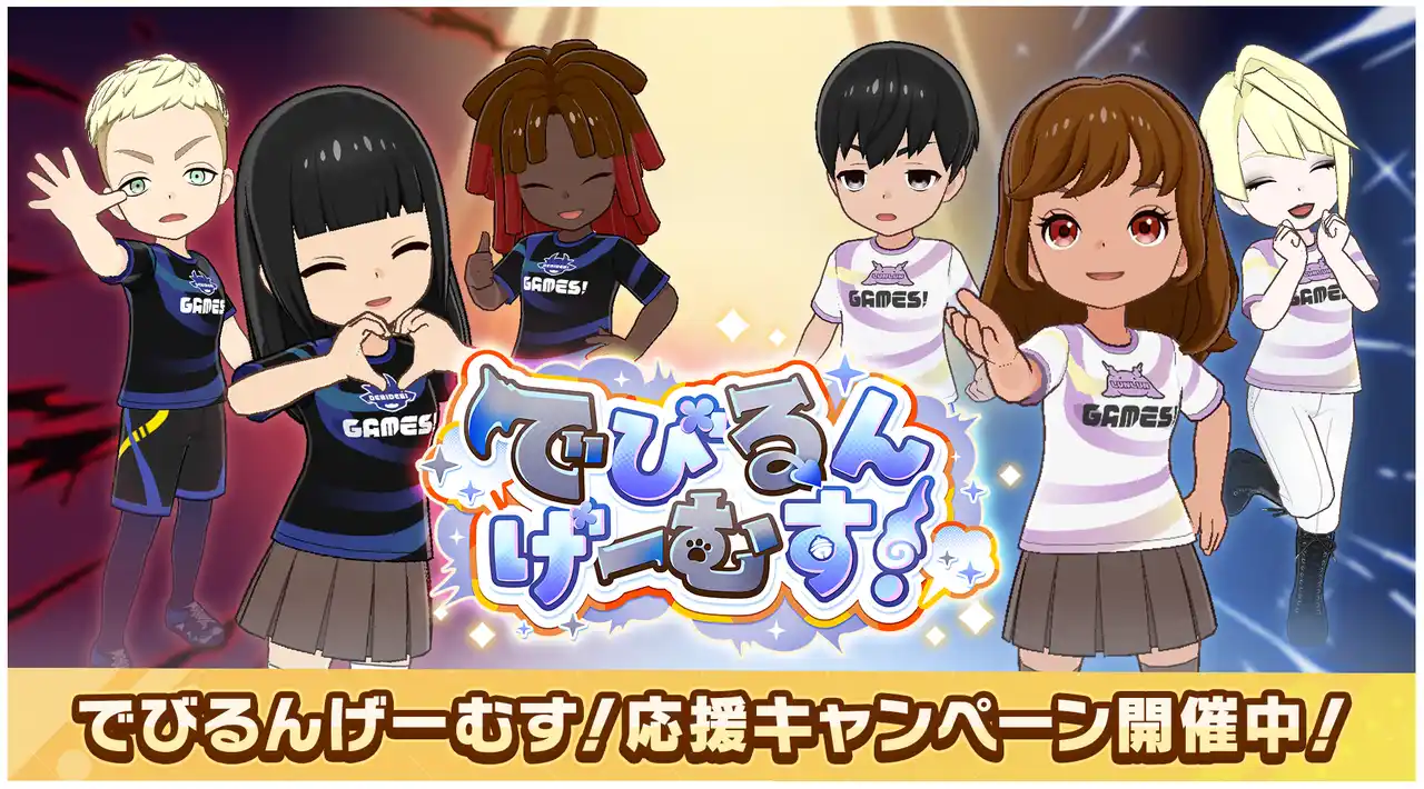 「でびるんげーむす!Supported by Cygames」は、バーチャルライバーグループ「にじさんじ」所属VTuber「でびでび・でびる」と「ルンルン」がチームリーダーを務める、4対4形式のオンラインゲームバトルイベントです。本イベントでは、「でびでびチーム」と「ルンルンチーム」に分かれたメンバーたちが、Cygamesのゲームを通じてドタバタのチーム対抗戦を展開します。OPENREC.tv および YouTube にて配信を予定しています。 |