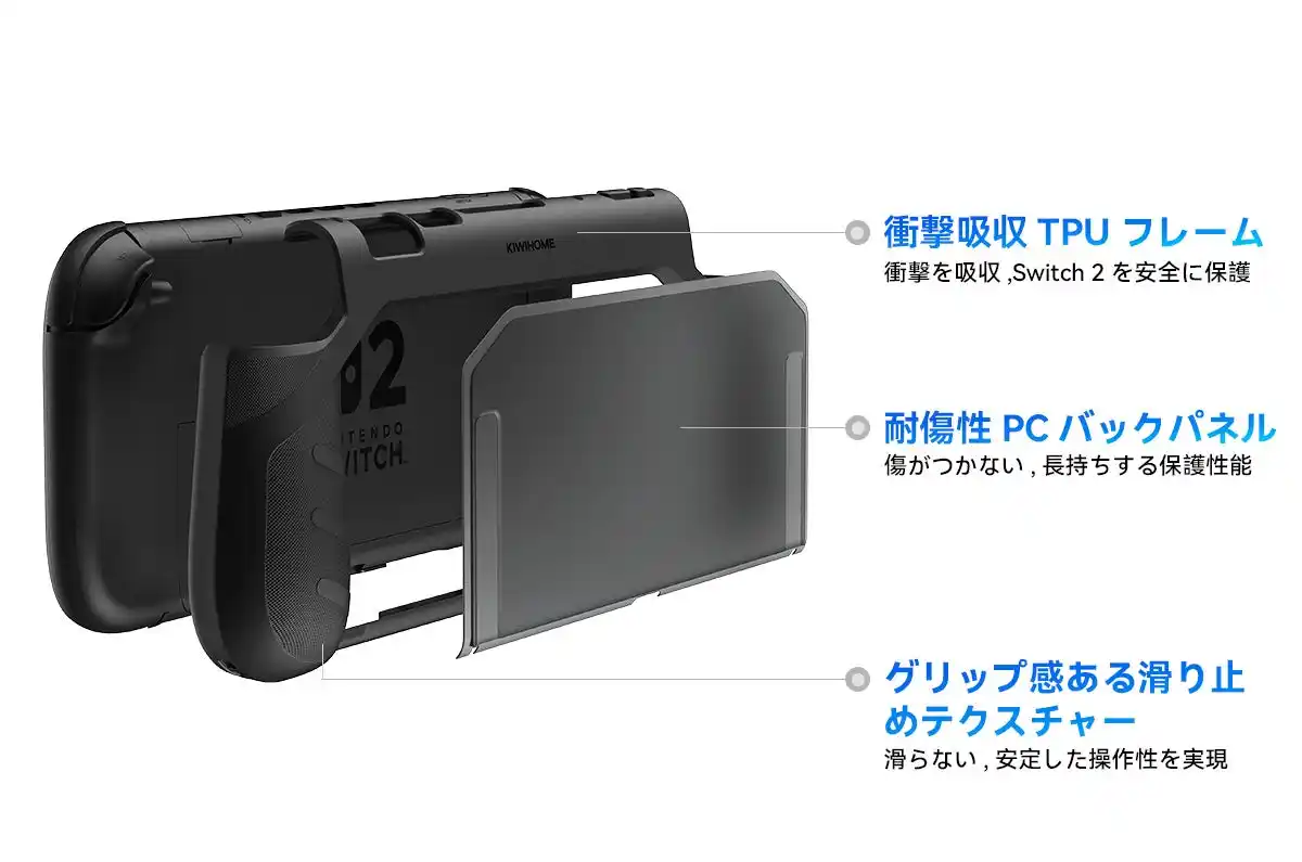 KIWIHOMEは、Nintendoの新型ゲーム機「Switch 2」に対応した対応保護カバーを発売しました。本品は、本体をドックに挿す際にケースの着脱が不要なのが特長です。専用設計により、保護性と機能性の完璧なバランスを実現しています。アクションゲームから長時間プレイするRPGまで、ケースの人間工学に基づいた握り部分は、手のひらに快適なサポートを提供します。 |
