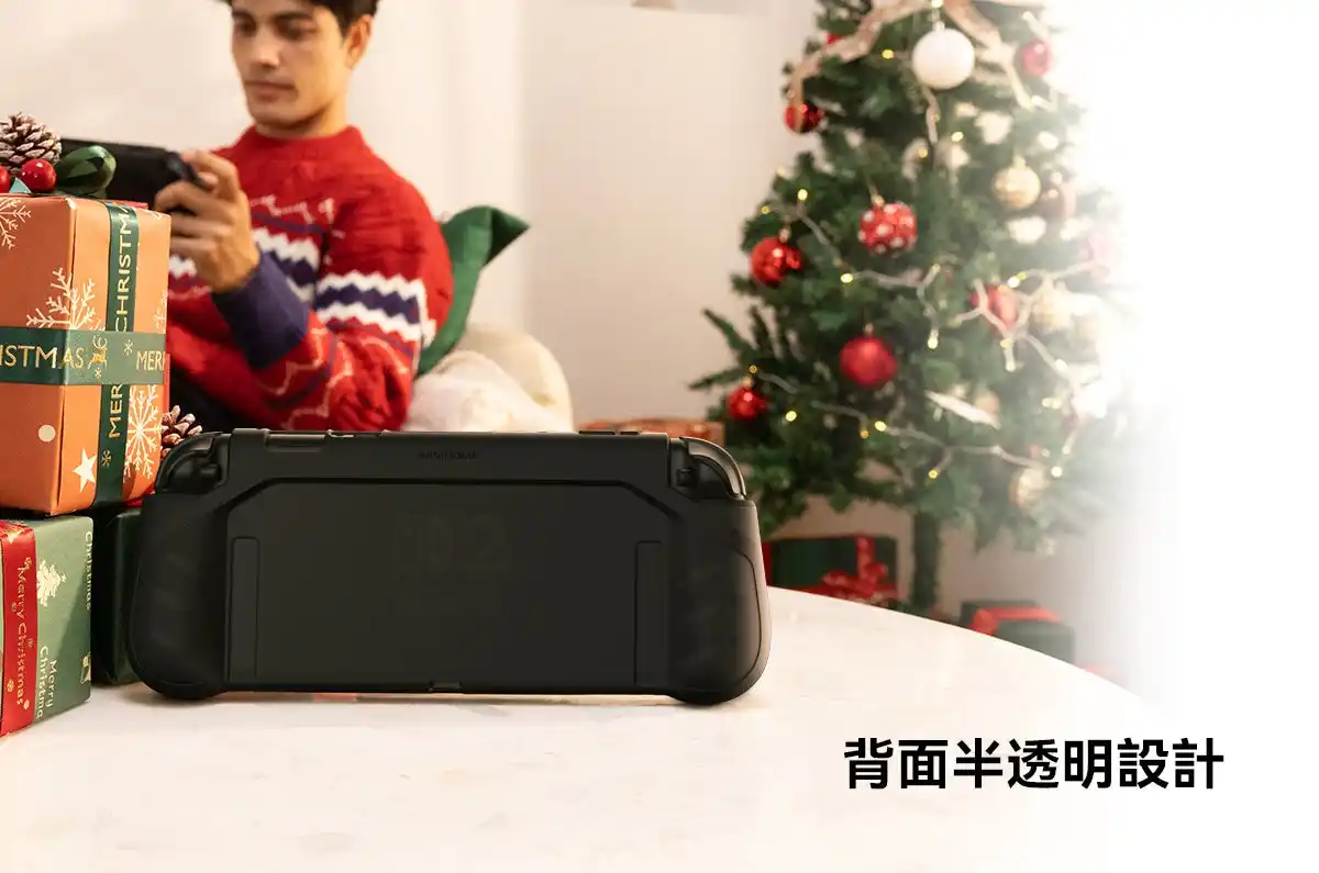 半透明ブラックのカラーバリエーション。Switch 2本体の質感をうかがわせつつ、ユーザーの個性を引き立てます。 |