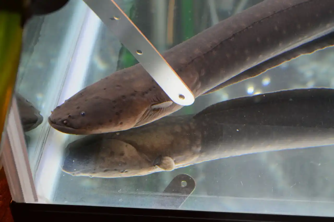 | 獲物を捕らえるために発生するデンキウナギの電気を見て分かる展示となっています。 | |||||||||