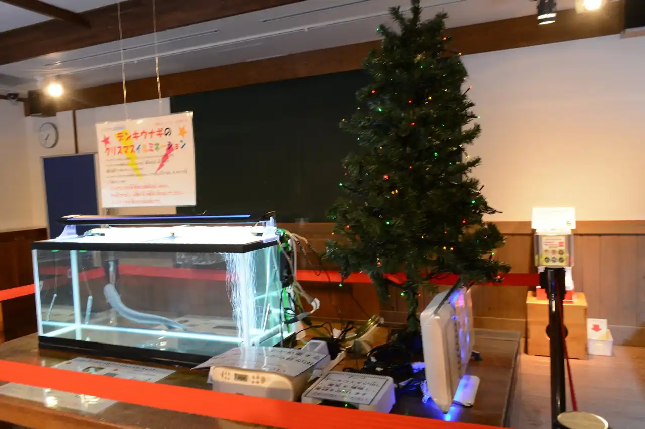 | デンキウナギの展示ではクリスマスイルミネーションの点灯をしています。 | |||||||||