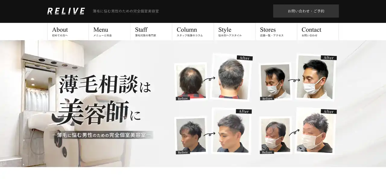 | 美容室が本来果たすべき役割を取り戻すために、RELIVEは薄毛男性に特化したサービスを提供し続けています。 | |||