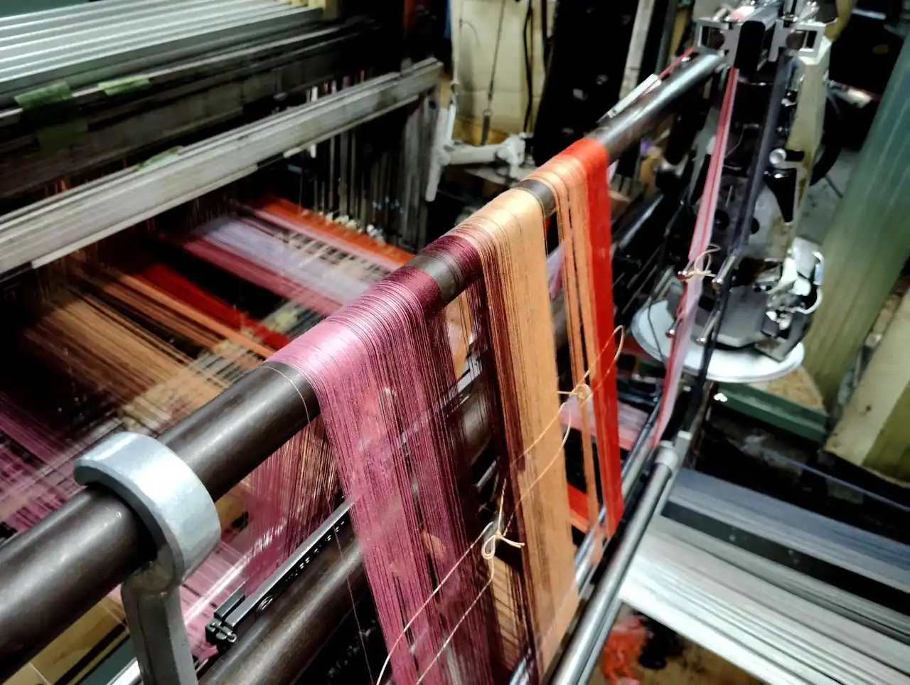 昭和初期創業の機屋で、ネクタイや袴の生地などを手がけてきた歴史を持ち、今もジャガード織機やドビー織機を用いてこだわりの織物づくりを続けている「岡村織物(有)」。 |