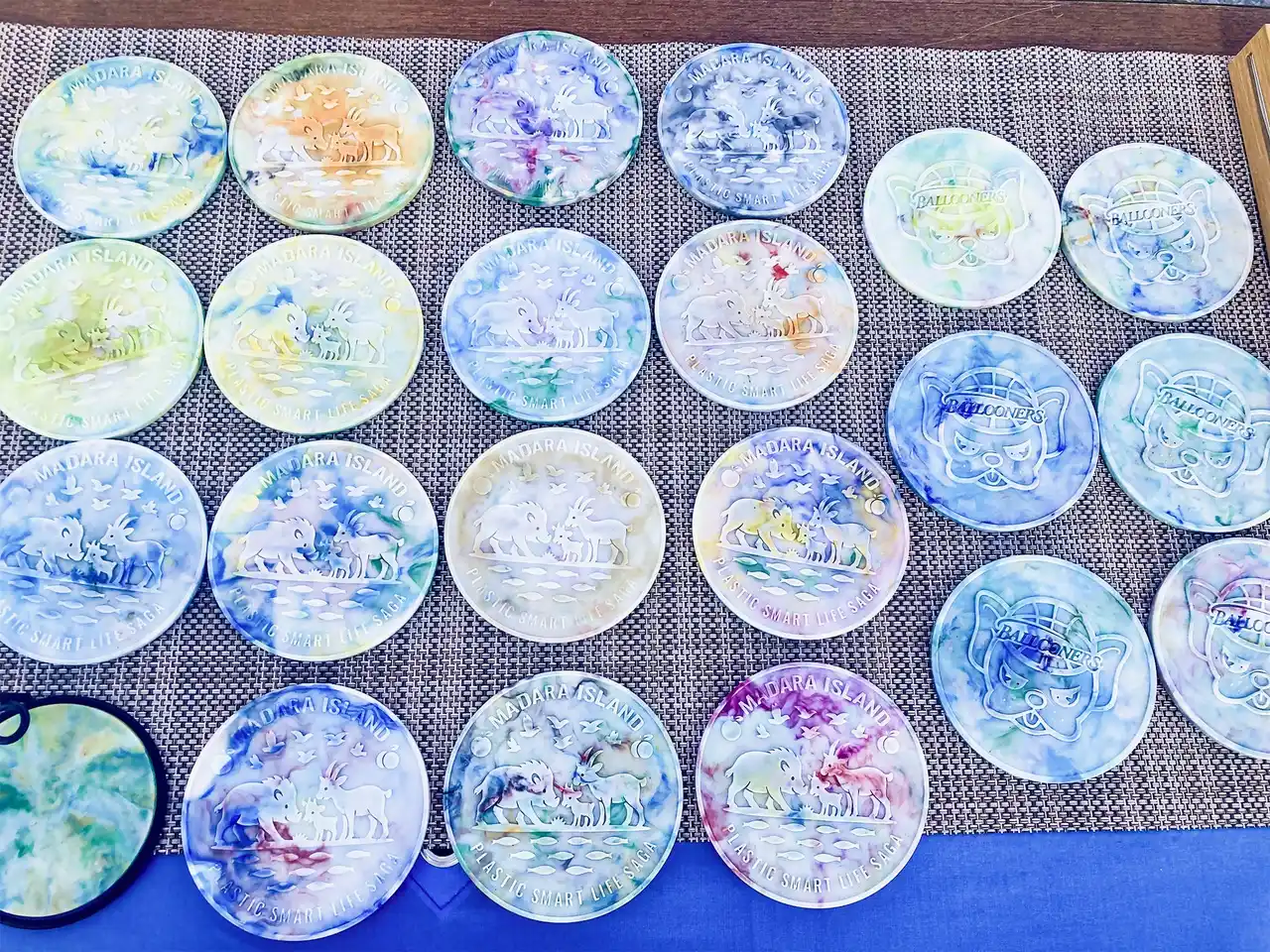 馬渡島の海岸で回収した廃プラスチックから生まれた 「馬渡島コースター」 |