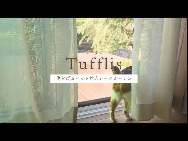 ペットとの暮らしで気になる、カーテンの「ひっかき傷」や「引っ張りジワ」。 Tufflis(タフリス)は、そんな悩みに寄り添い、“傷が戻る”リペア機能を搭載した新発想のレースカーテンです。 |