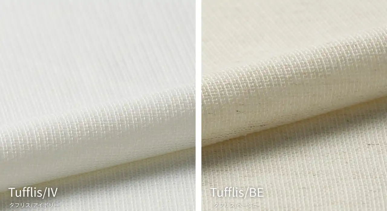 アイボリーとベージュの2色展開。 どちらも空間に自然となじみやすく、北欧・ナチュラル・和モダンなど、幅広いインテリアスタイルに調和します。特にベージュは、リネン繊維の素朴な風合いをあえて残した仕上がりで、ナチュラルな質感をお好みの方におすすめのカラーです。 |