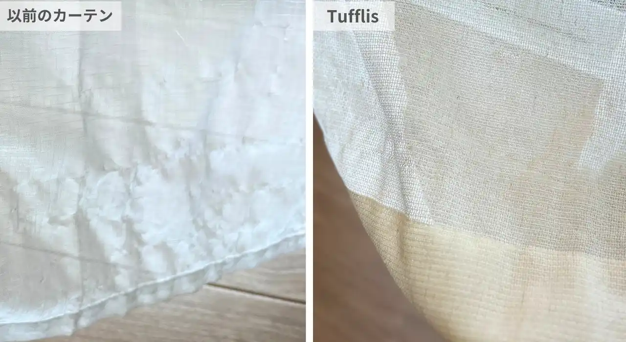 以前使用していたカーテンと比べてみると、傷が目立ちにくい |