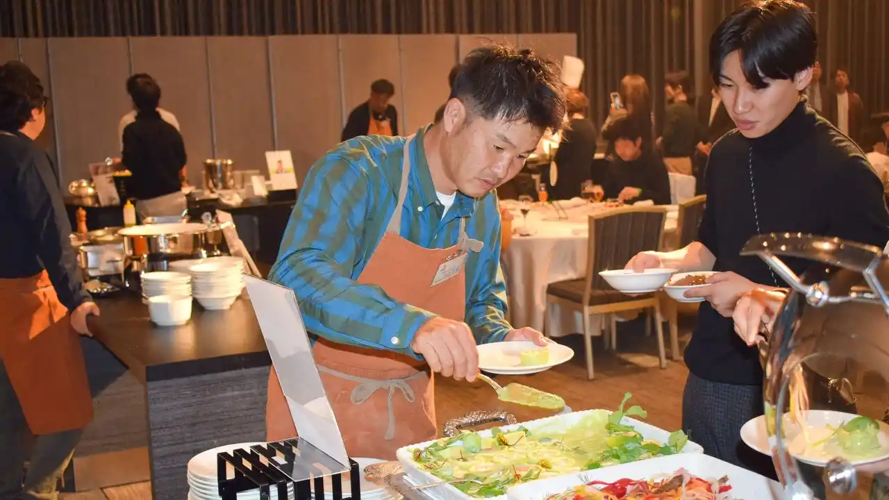 生産者も料理を一緒に盛り付け |