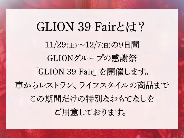 | ▶GLION 39 Fair 開催概要 | |||||||||||||||