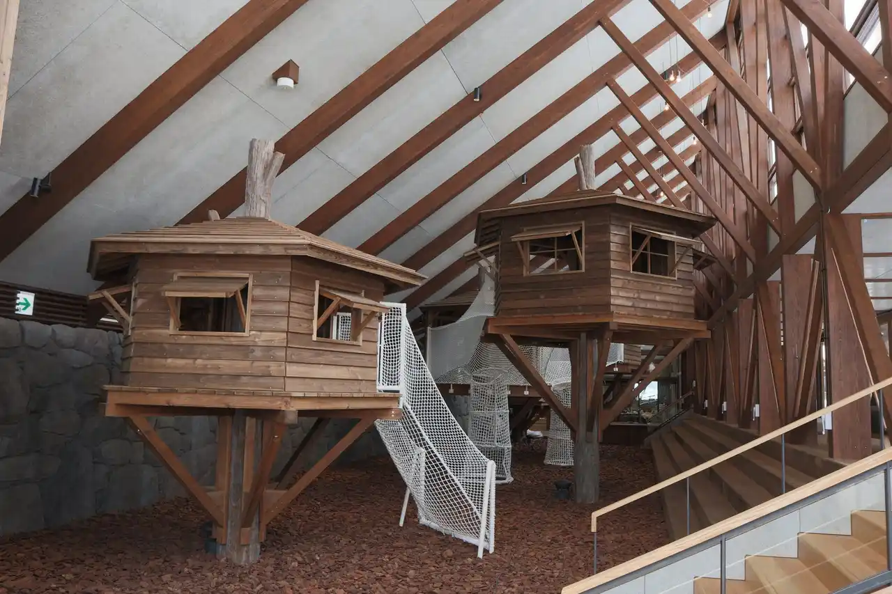 また、全天候型の屋内アクティビティにはツリーハウスなどの遊具があり、雨の日や寒い日でもお子さまが思いきり遊べる環境が整っています。 |