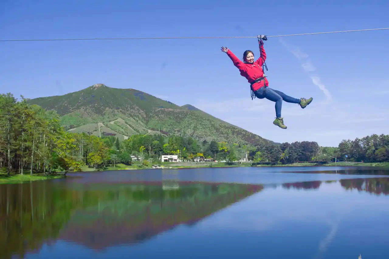 標高約1,000mの飯綱高原の大座法師池のほとりにたたずむnagano forest village。 森の駅Daizahoushiと5つのフィールドからなる自然体験リゾートです。 |
