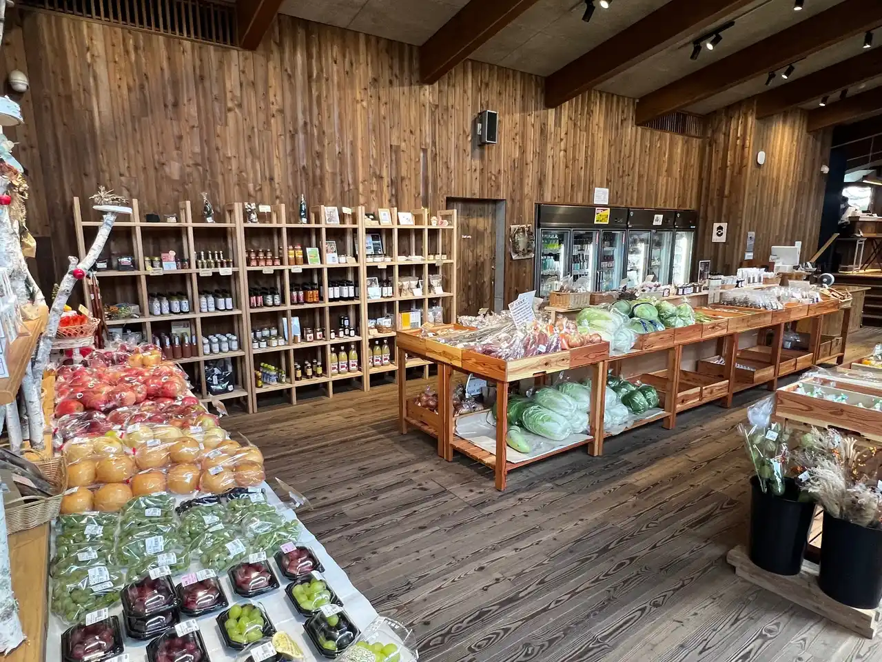 森の駅「Daizahoushi」のマルシェでは、地元で採れた新鮮な野菜をはじめ、信州ならではのお土産品や調味料などを幅広く取り揃えています。 |