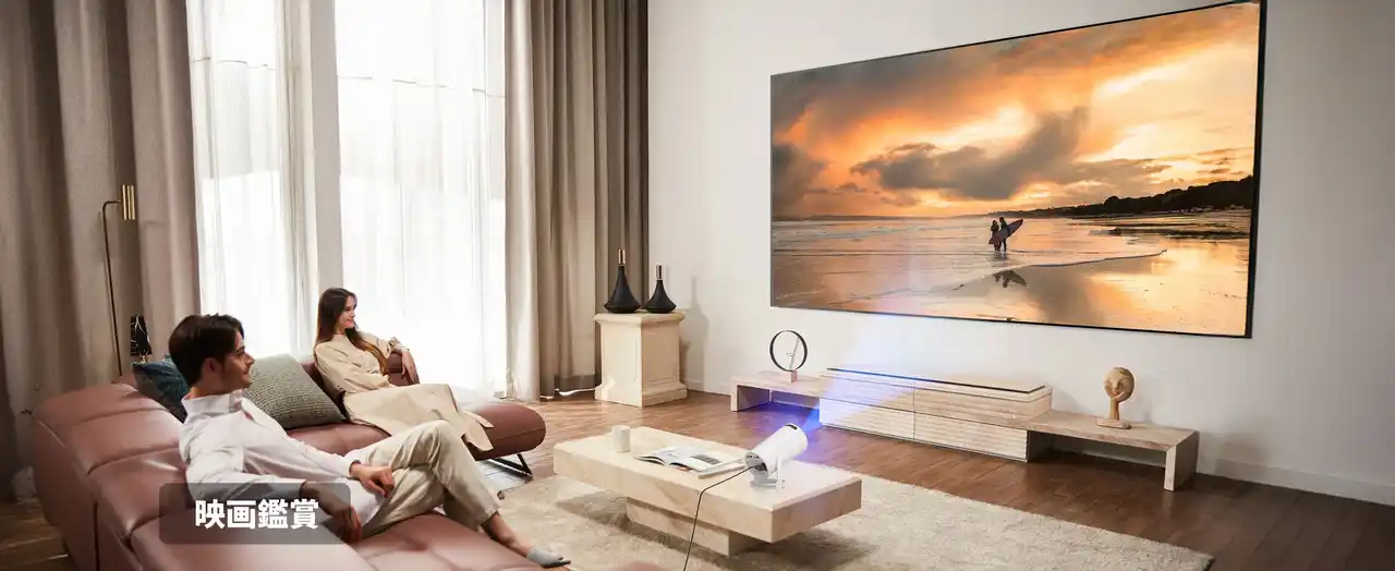 | 設置後、自動で鮮明な映像を表示。面倒な調整は不要で、誰でも簡単に美しい映像を楽しめます。プロジェクター初心者でも安心して使える仕様です。 | ||||||||||||