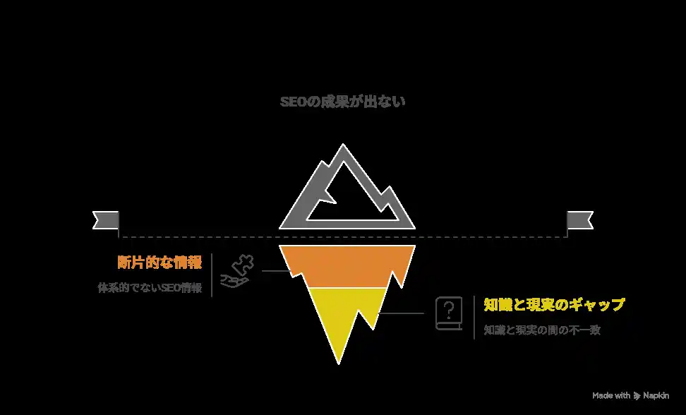 インターネット上には無数のSEO情報がありますが、その大半は断片的で、体系的ではありません。そのため、知識と現実のギャップが生まれ、努力しても成果に結びつかないのです。 |