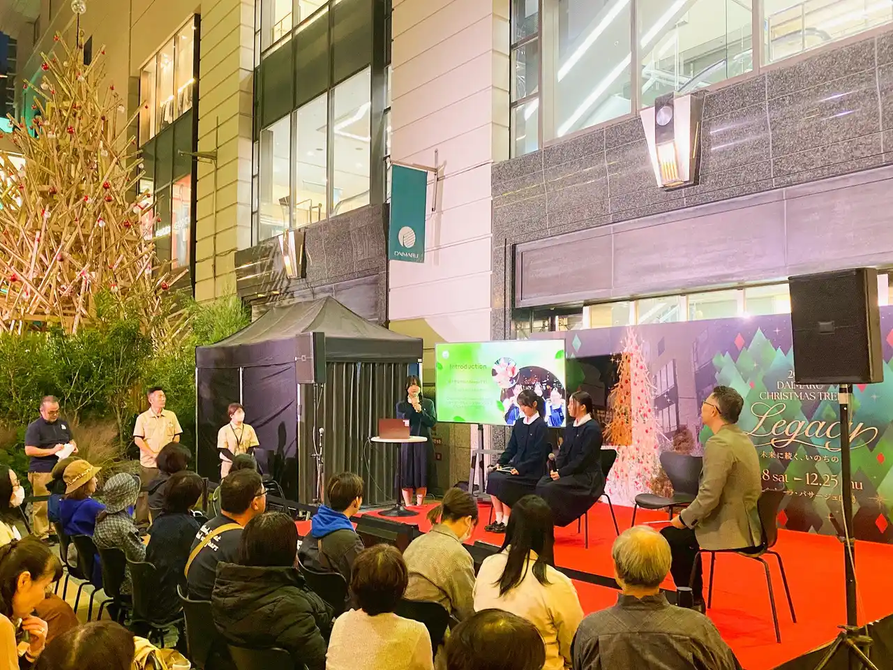 大分県の自然共生サイト「田島山業」の間伐材を活用したツリーを中心に、九州各地の自然共生サイト(36団体)が連携する“ネイチャーポジティブ・クリスマス”を実現しました。環境省からも「民間企業がこれほど多くの自然共生サイトを集めたイベントは全国でも前例がない」と紹介されました。 |