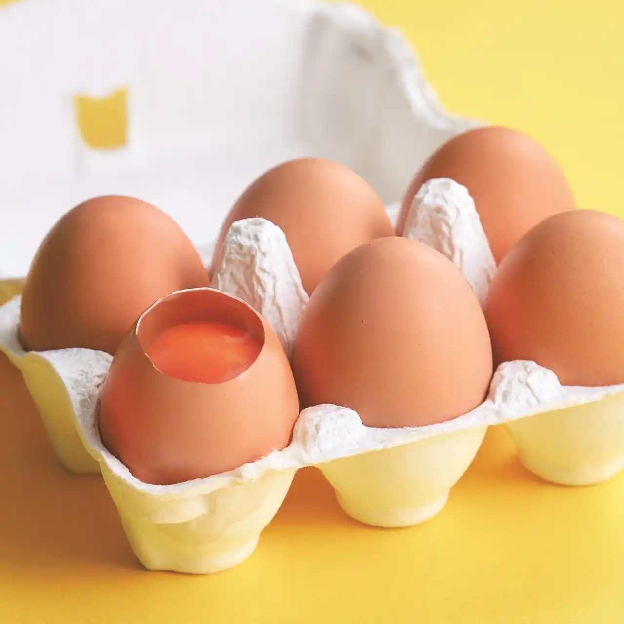 生まれる卵は黄身の赤みが強く、味わいも濃厚です。 |