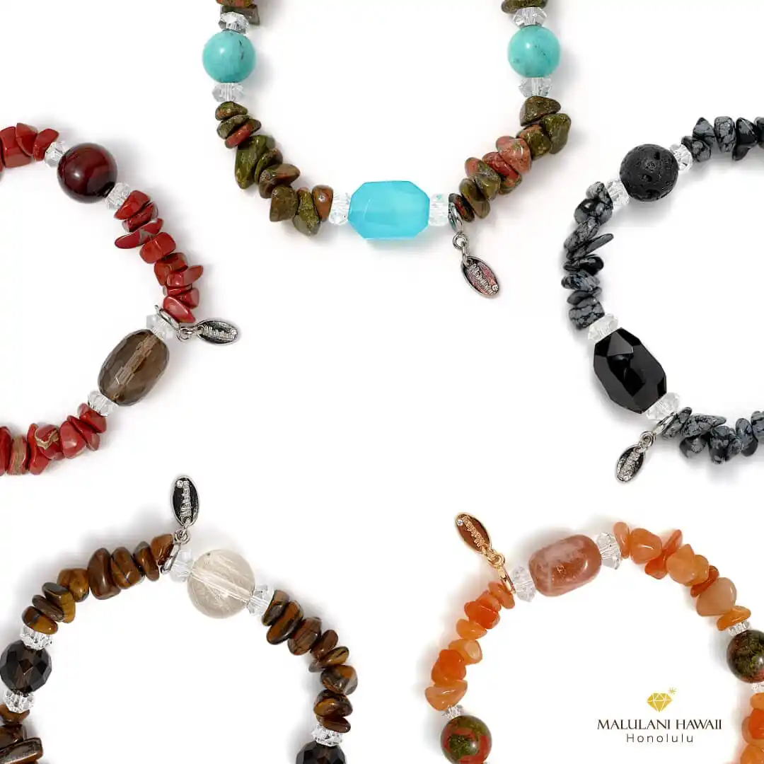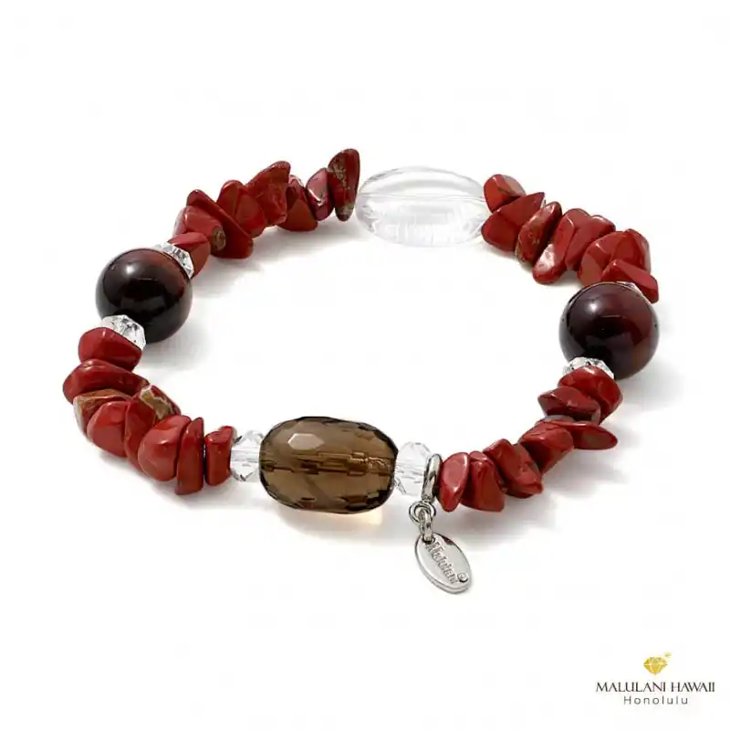 力強さ満載の石たちが、地に足を着けて生きるエネルギーを呼び覚まし、成功を促すブレスレット。 |