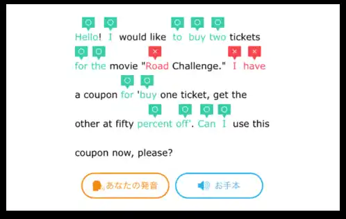 レッスン中、ネイティブスピーカーによる発音チェックに加え、最先端のAI自動採点システムを採用。発音の課題や弱点を客観的に把握し、次回に生かせる改善点を明確にすることができます。 |