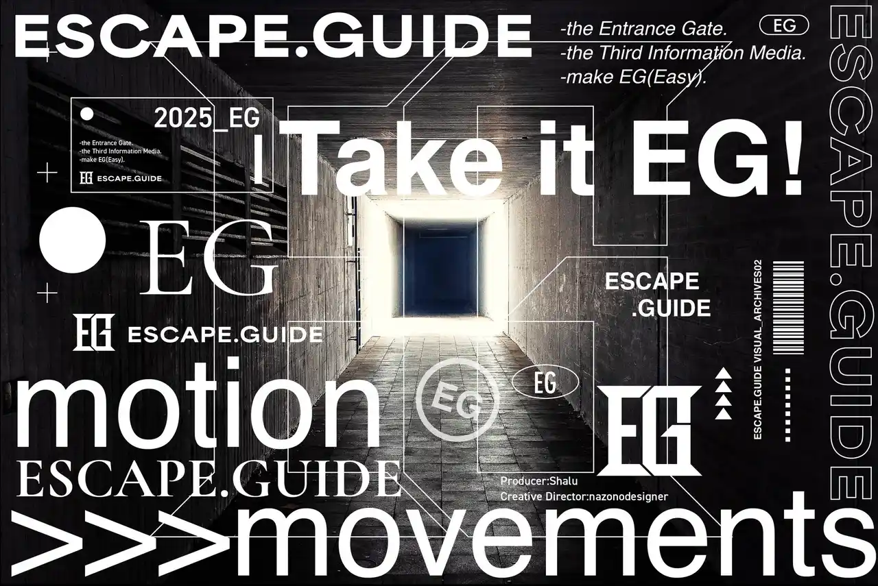 ESCAPE.GUIDEは、「謎解き・脱出ゲームへの新しい"入り口"」です。これから謎解き・脱出ゲーム・体験型イベントを初めて遊ぶ人向けに、丁寧な「参加までの道筋」を示したり、制作会社・団体の特徴や思い入れなど、これまで謎解き・脱出ゲームファンが知ることができなかった内容など、"新しい入り口"となるメディアとなることで、謎解き・脱出ゲーム・体験型イベントの文化がより深く広くなることを目指しています。 ESCAPE.GUIDEの頭文字でもあるロゴの「EG」の文字には、"入り口"を表す"Entrance Gate"の意味とともに、「気軽に謎解きに参加できるように」という想いを込めた"EG(イージー)"の精神を表しています。 |