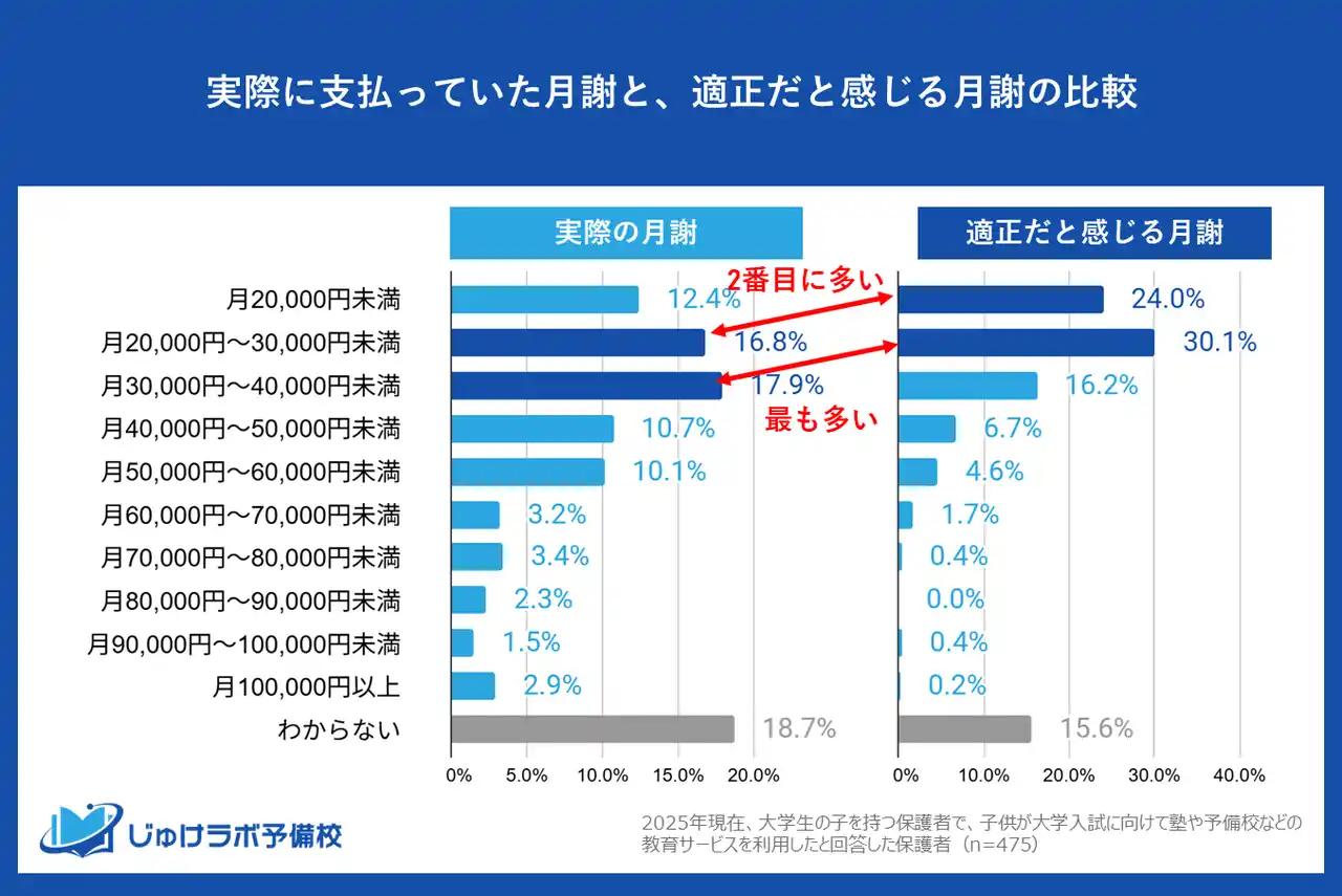 有効回答:2025年現在、大学生の子を持つ保護者で、子供が大学入試に向けて塾や予備校などの教育サービスを利用したと回答した475名 |