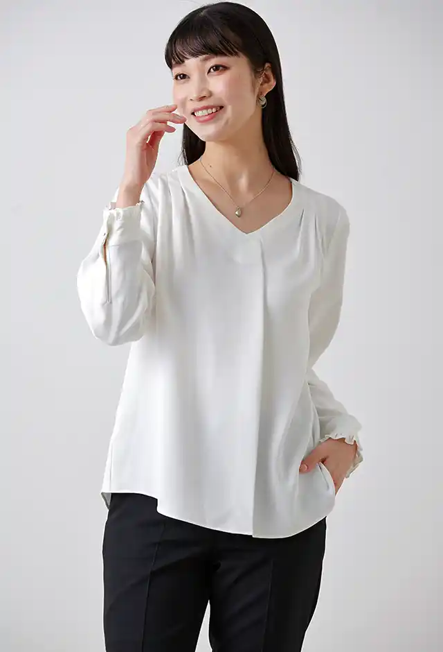 襟や袖のデザイン、シルエットのバランスにこだわり、ライトカラーでも透けにくく美しく映えるデザインです。 |