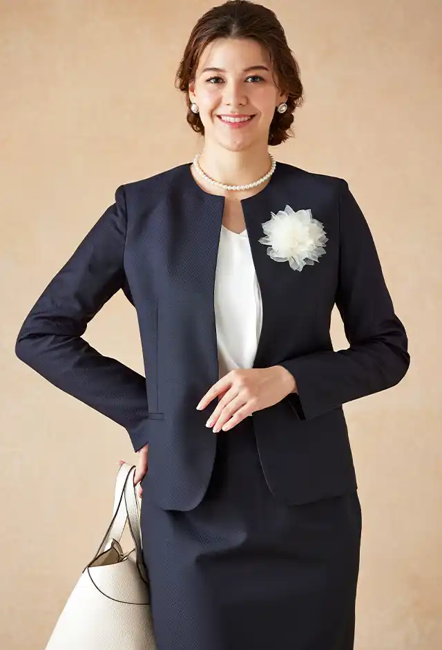 長く愛用できる、上質素材かつサイズに合ったレディースオーダースーツを既製品のレディースブラックフォーマルスーツ(礼服)とさほど変わらないお値段でオーダーいただけます。 |