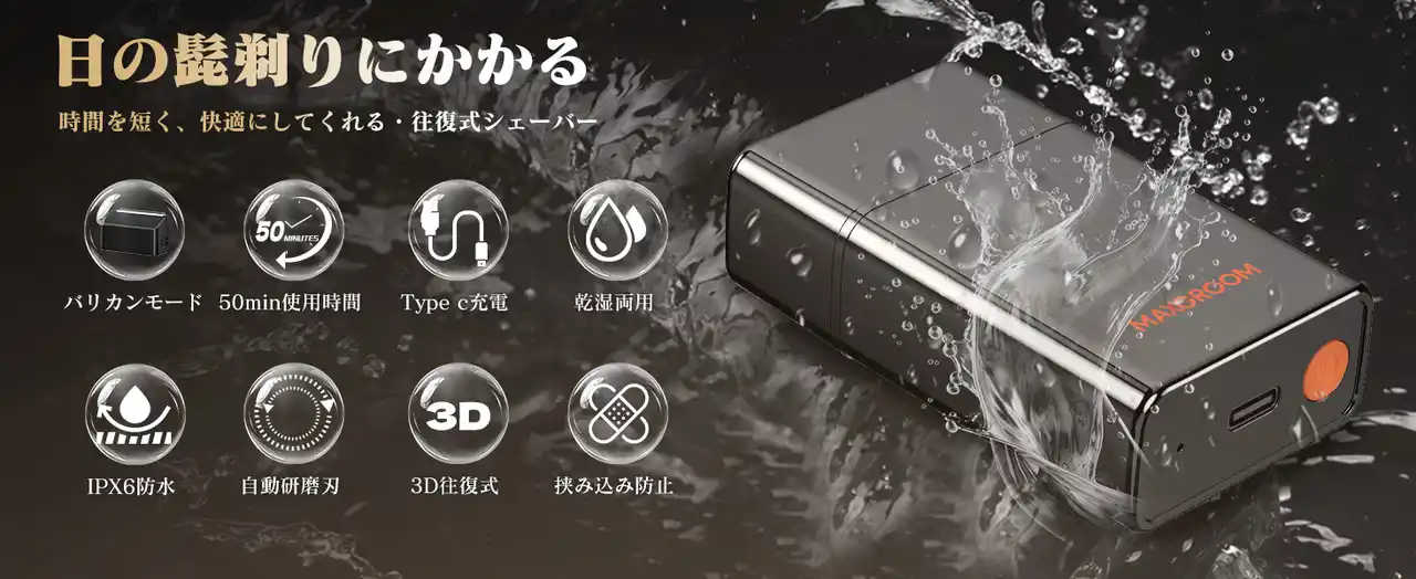 | IPX7防水 × 丸洗い対応:風呂剃りOK、清潔に保ちたい方に最適。 | |||||||||||||||||||||