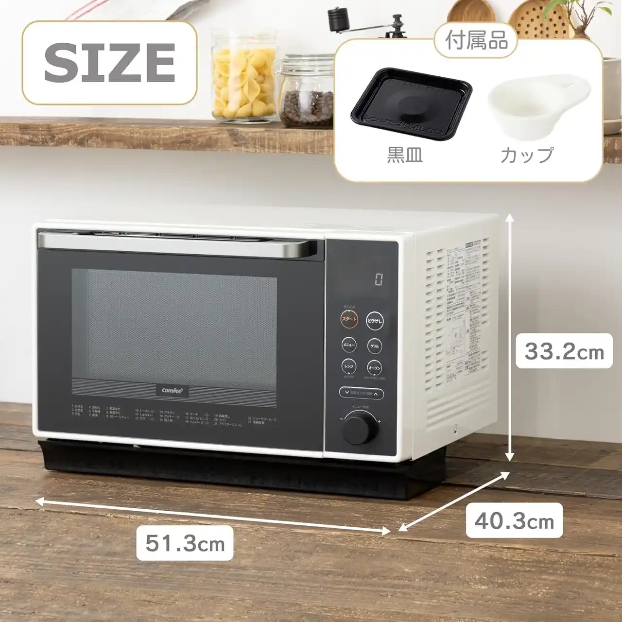 | コンフィー(COMFEE') スチームオーブンレンジ 25L フラットテーブル オートメニュー23種 オーブン~250℃ レンジ~1000W スチーム調理 発酵・トースト機能 | |||
