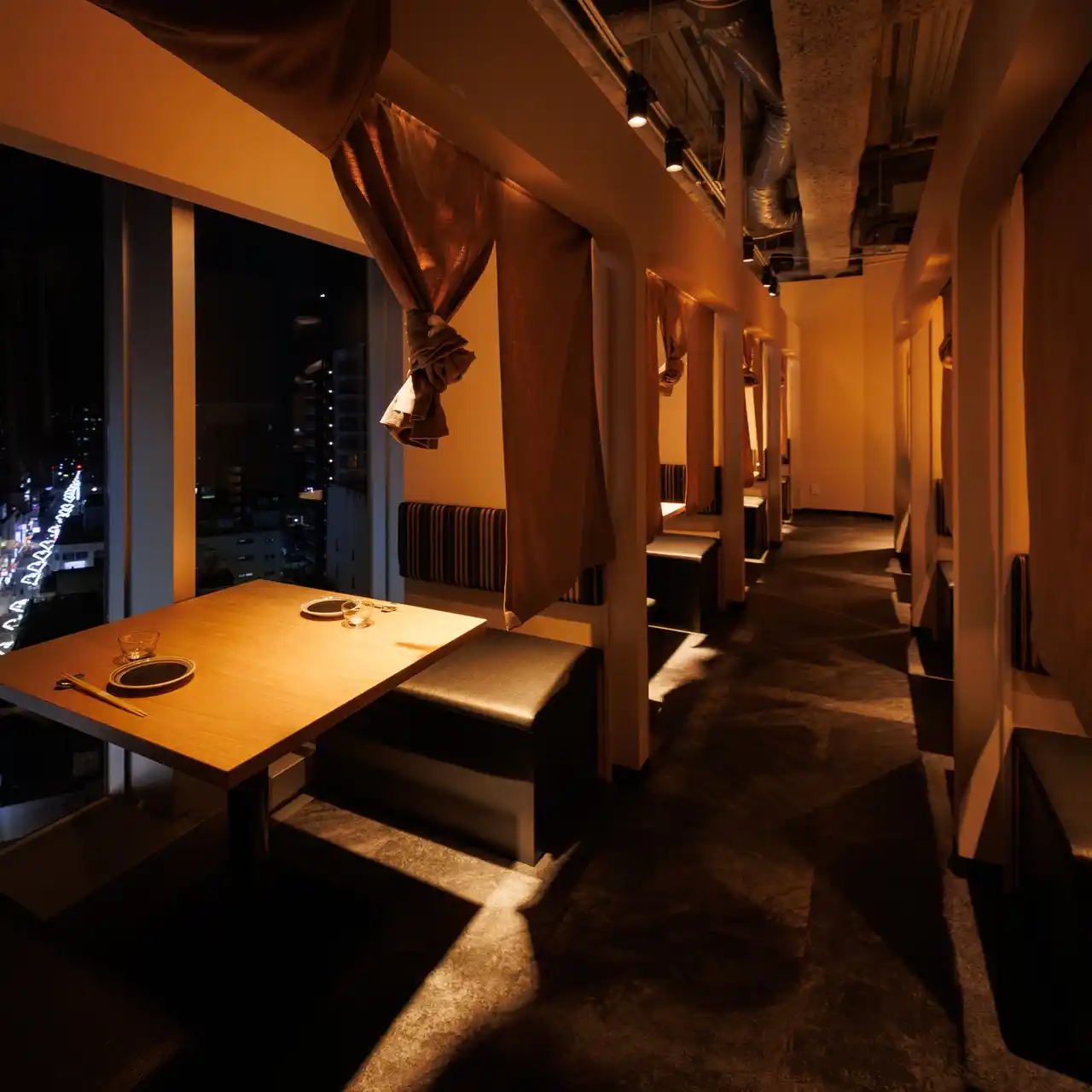 日本酒を原価で楽しめるのはもちろん、高層ビル11Fからの夜景も大きな魅力のひとつ。 街の灯りを眺めながら、ゆったりとお酒を味わっていただけます。 |