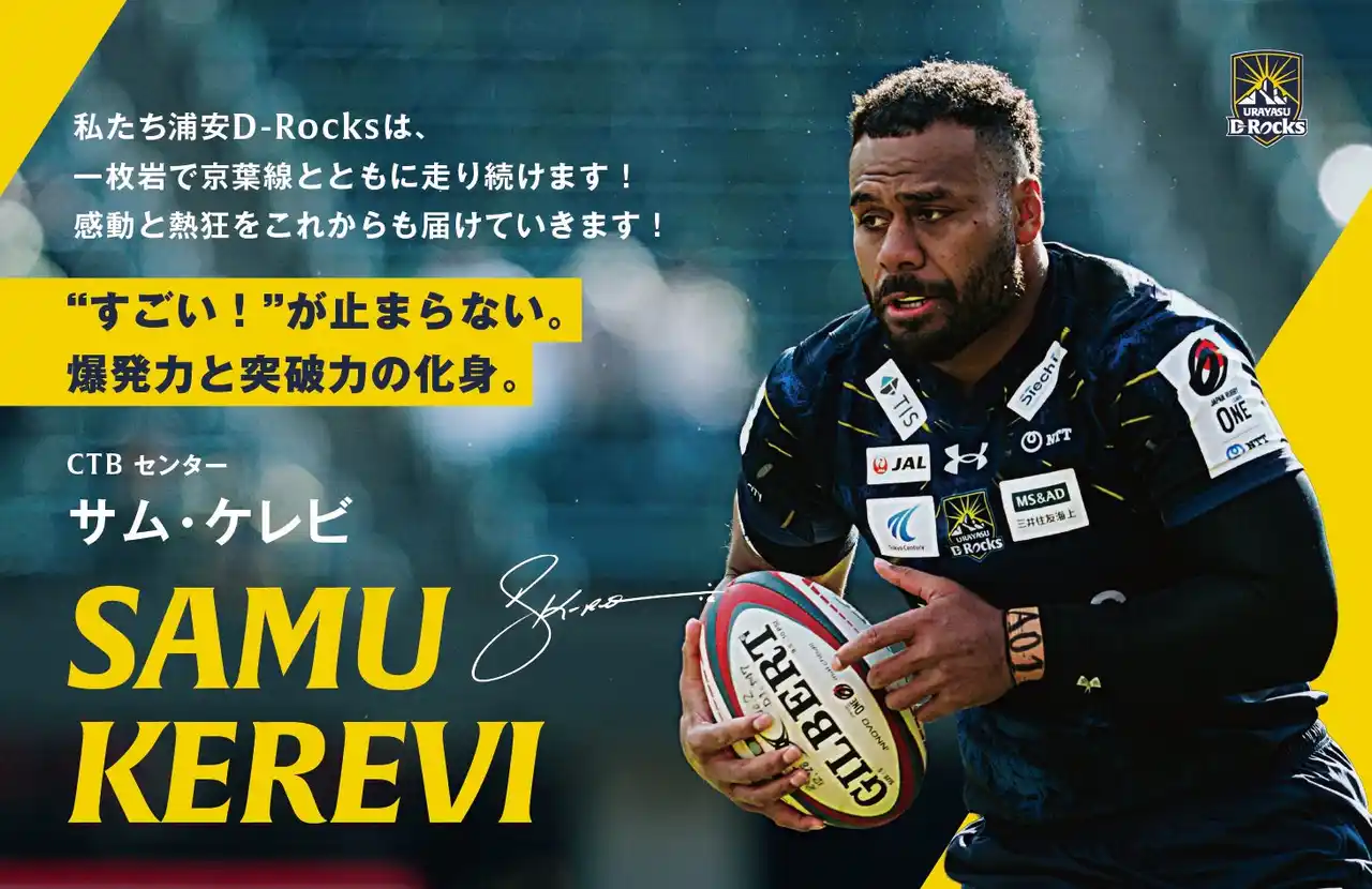 全線開業35周年を迎えるJR京葉線とともに、これからも浦安D-Rocksは、ラグビーを通じて"一枚岩のチーム力"で、ファンの皆さまに感動と興奮を届けてまいります。 JR京葉線「浦安D-Rocksトレイン」の乗車をぜひお楽しみください。 |