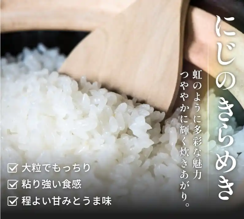 ふじさん和歌山店では和歌山の特産米「にじのきらめき」を採用しております。特徴としては、粒が大きく、粘りがあって、あっさりとした味わいが特徴のお米です。ツヤのある炊きあがりで、コシヒカリに匹敵する美味しさとされ、おにぎりや濃い味のおかずにも合う万能な品種です。高温に強い特性があり、うなぎと蒲焼のタレに非常にマッチする事間違いないです! |