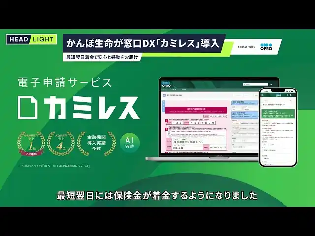 本動画では、株式会社かんぽ生命保険(本社:東京都千代田区、取締役兼代表執行役社長:谷垣邦夫、以下「かんぽ生命」)より、カスタマーサービス推進部長の田代康基氏をゲストに迎え、「カミレス」導入の背景や効果についてお話しいただきました。 |