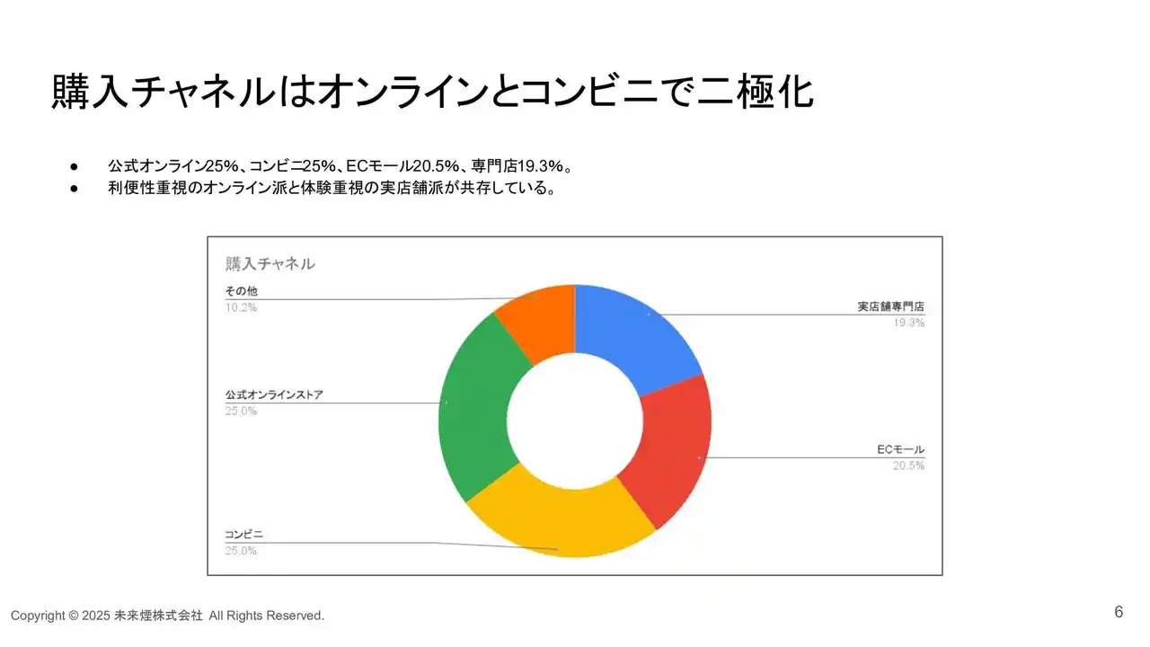 公式オンラインストア25%、コンビニ25%。利便性を求める層と体験重視層が二極化 |