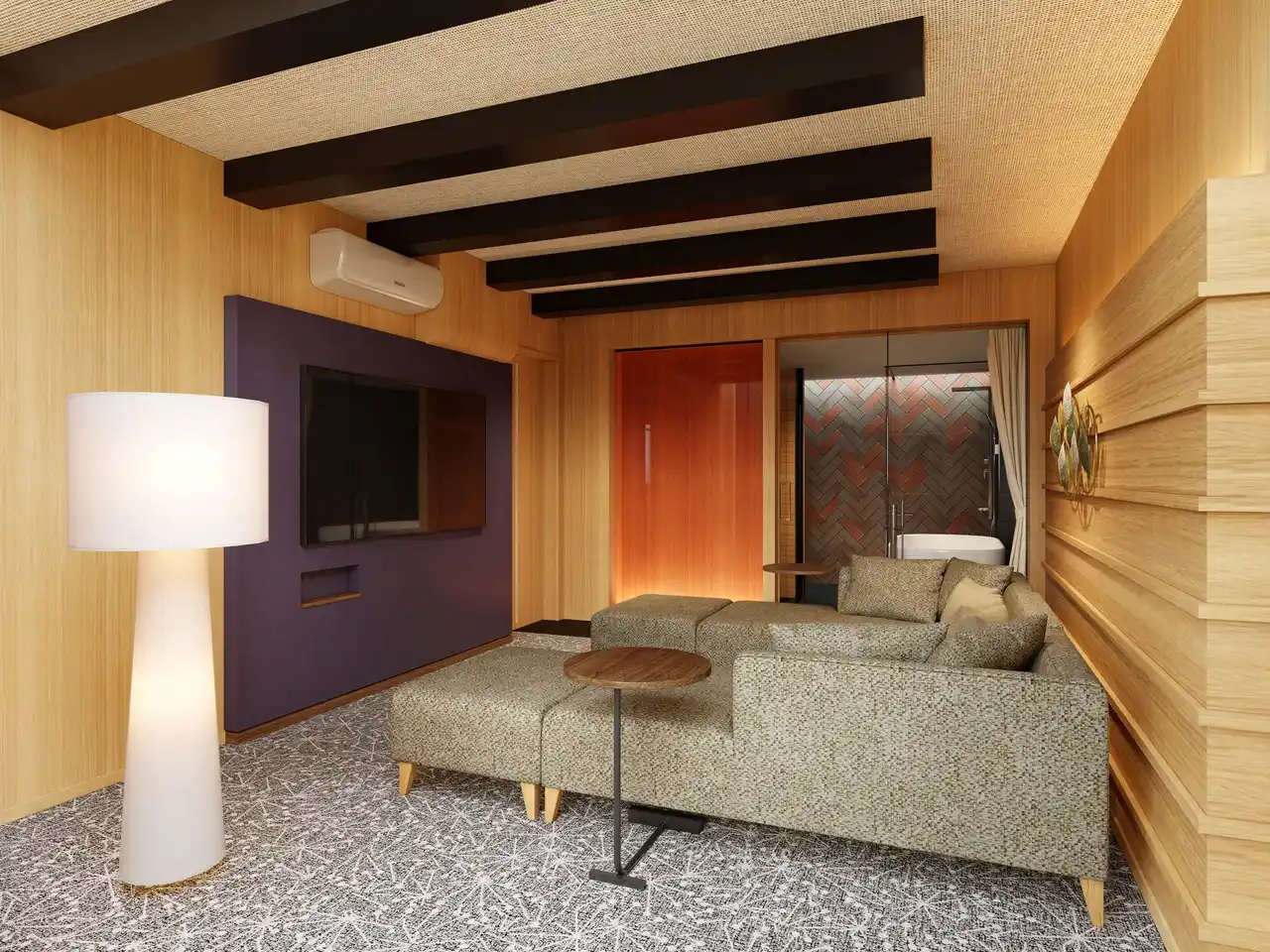 スイートルーム(2室)には、プライベートサウナを新設。いつでもサウナをご利用いただけます。 |